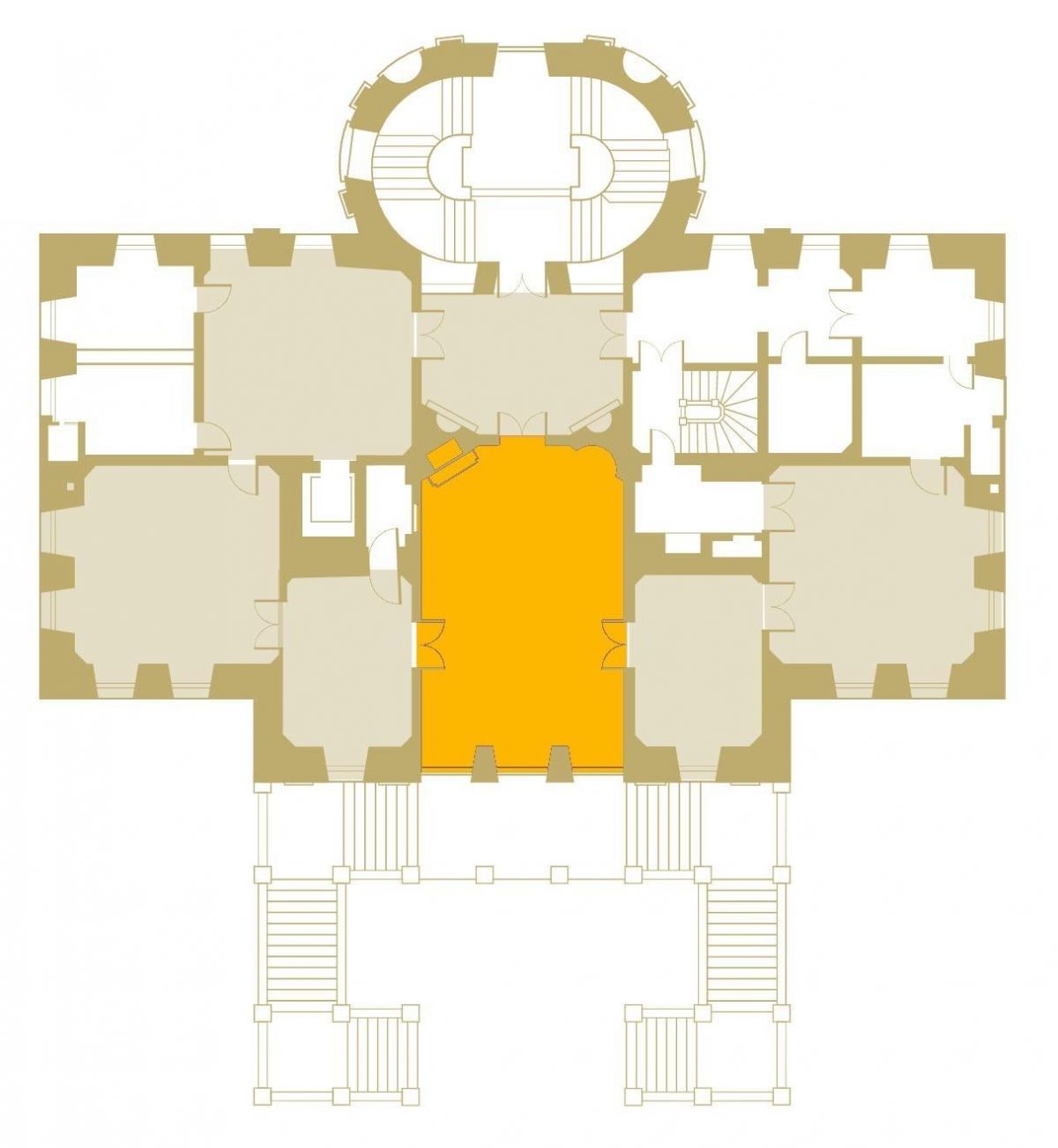 Der frühere Salon des Großherzogs. Mit Treppe zur Terrasse.